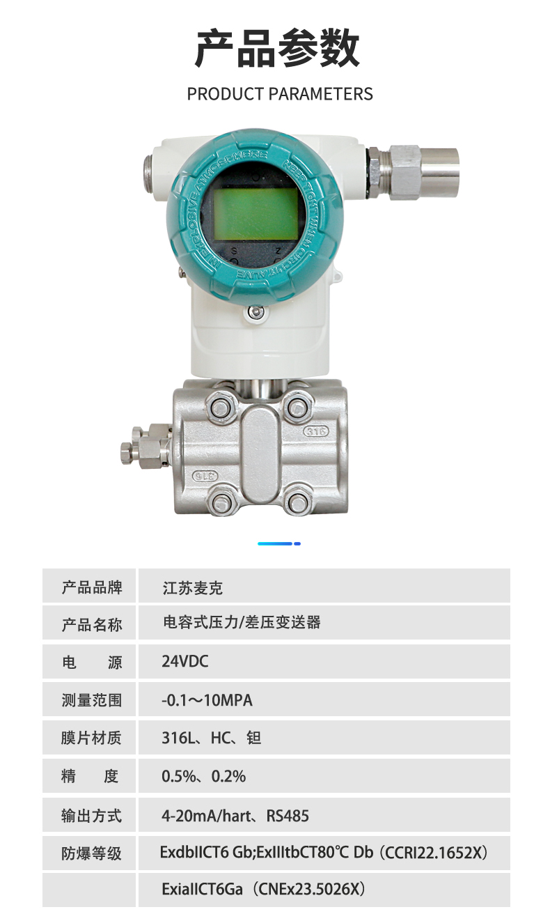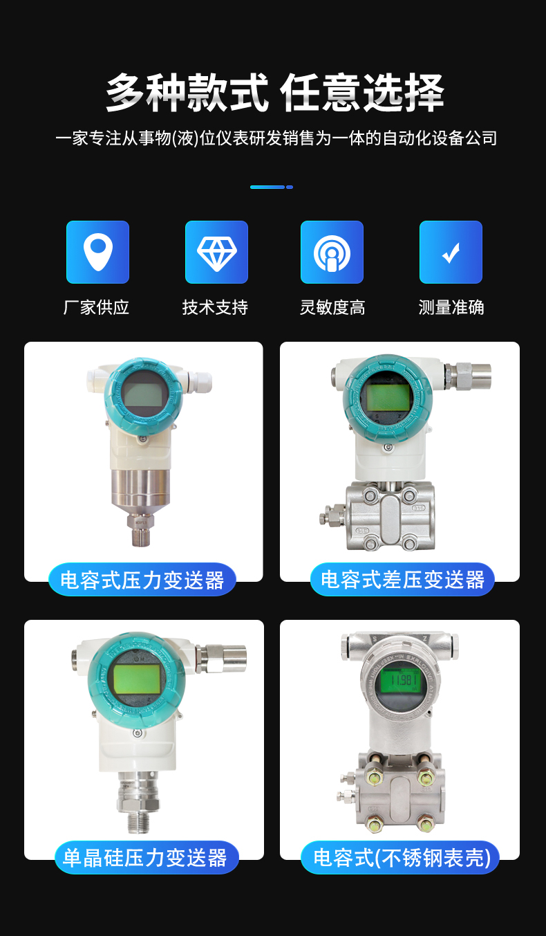 電容式智能壓力變送器是以微處理器為核心的壓力測量儀表,借鑒國外先進技術(shù),采用的進口零部件及先進的設(shè)計原理,利用微處理器技術(shù)進行溫度特性和非線性補償,從而提高儀